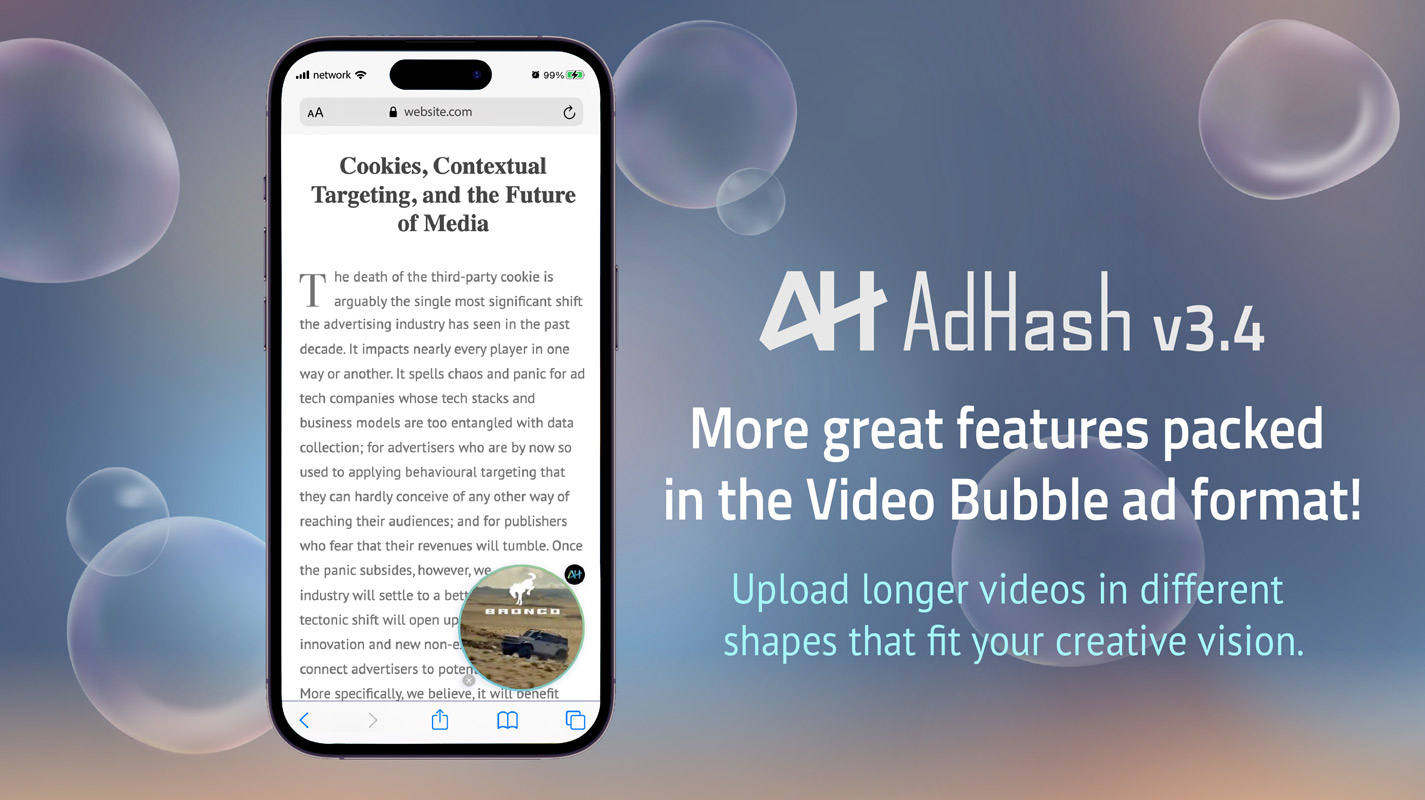 - We are introducing the Video Bubble - a unique and more personal video ad format to drive better results for both advertisers and publishers;